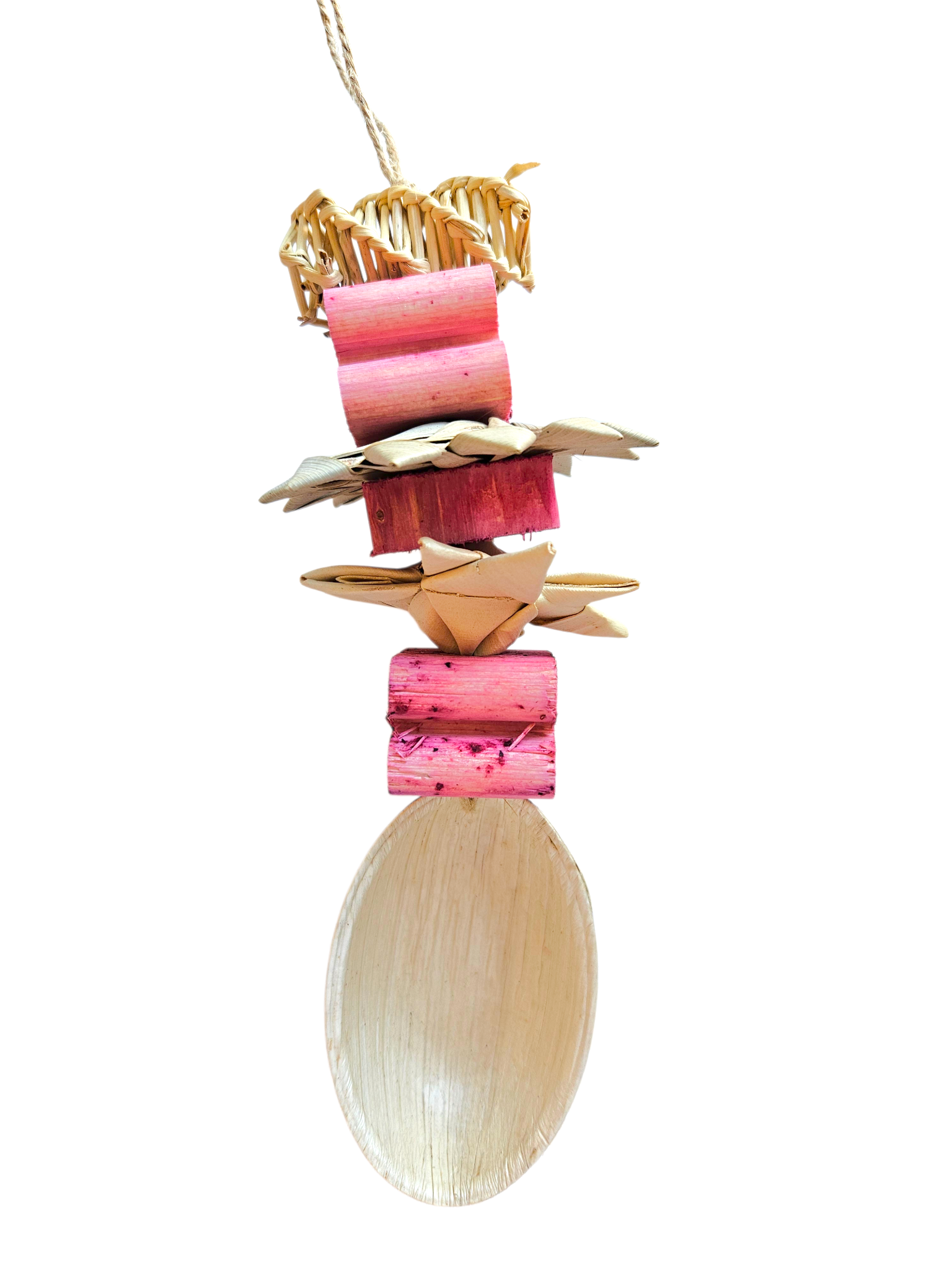 At the heart of this design hangs a natural palm leaf egg, creating a playful focal point that’s perfect for spring. Surrounding it is a thoughtfully selected mix of textures, from berry infused natural pine chews that add an extra layer of sensory interest, to crunchy palm leaf and vine chews that encourage natural chewing, shredding and foraging behaviours.