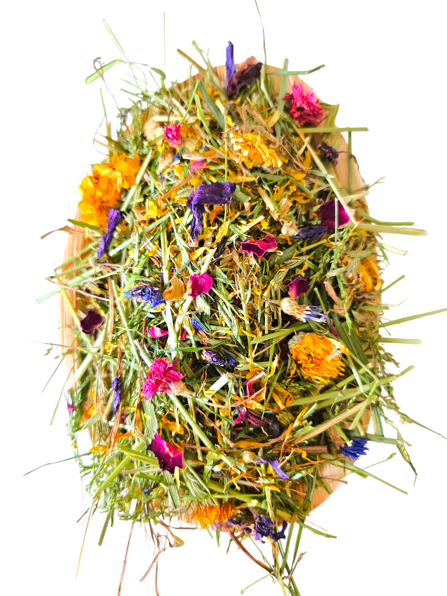 Composition: Dried Grass, Rose, Blue Mallow Flower, Marigold, Hibiscus, Sunflower Petal, Cornflower