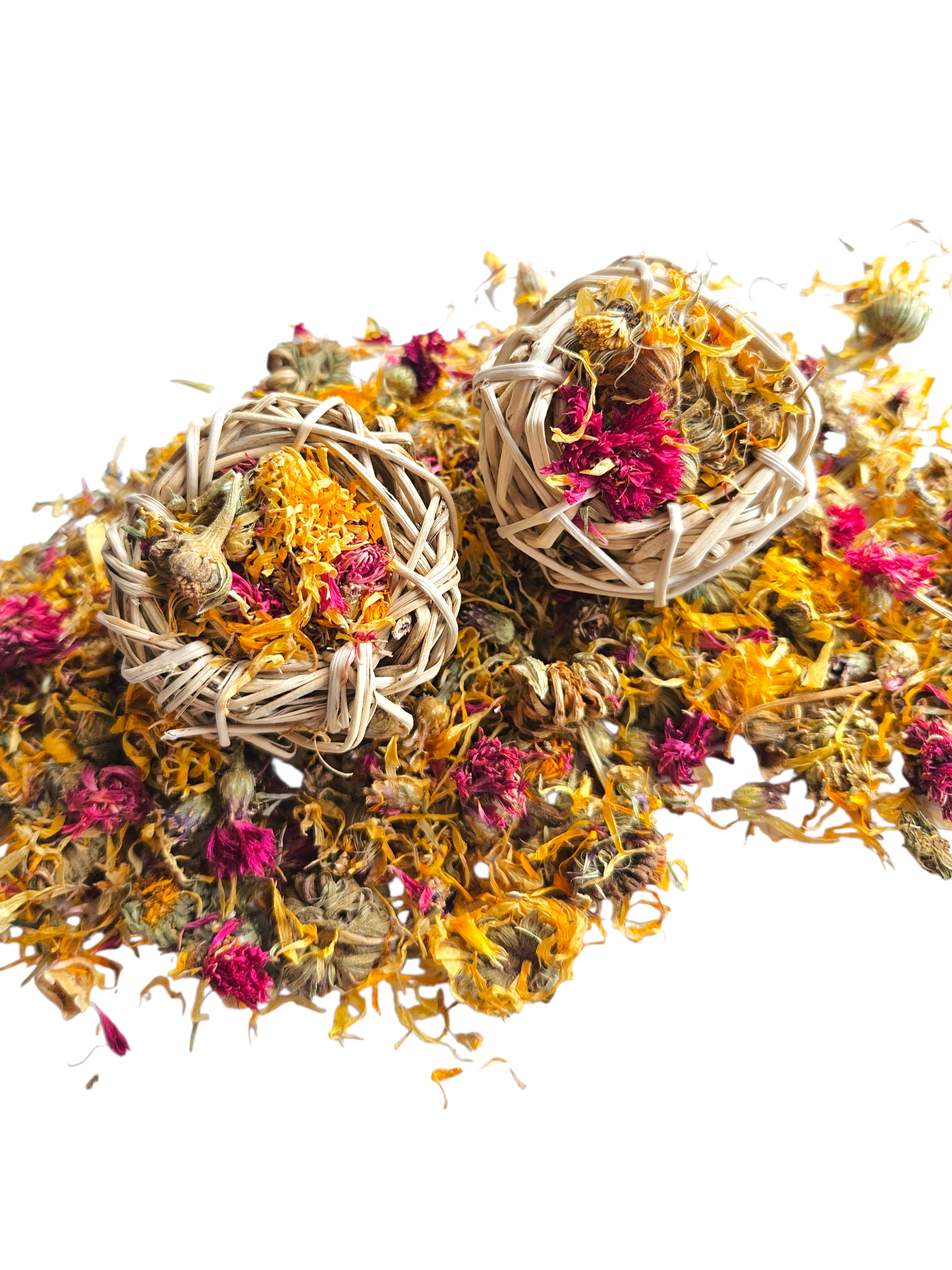Perfect for hiding in hay piles, placing around your pets enclosure, or adding to enrichment setups, these little nests invite curious noses to sniff, nibble and explore. Your small pets will love pulling the flowers out piece by piece, just like they would when foraging in nature!